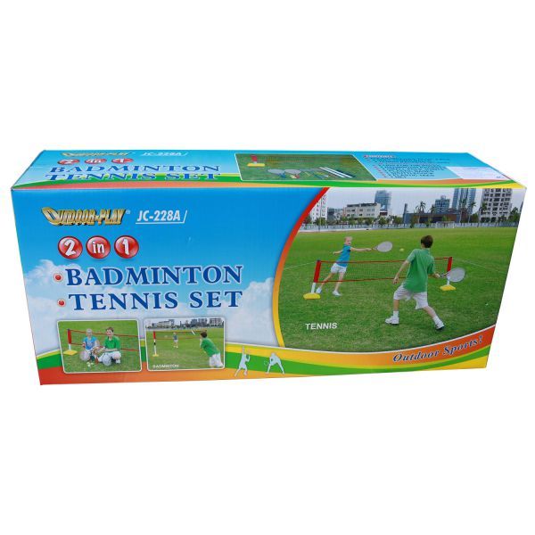 Комплект для игр на природе. В комплекте складная сетка, которую можно настроить для игры в теннис, бадминтон, благодаря возможности изменить высоту сетки.